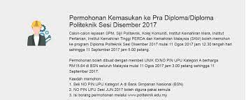 Related : Permohonan Politeknik Sesi Disember 2017 / Di manakah saya hendak mendapatkan pin politeknik?.